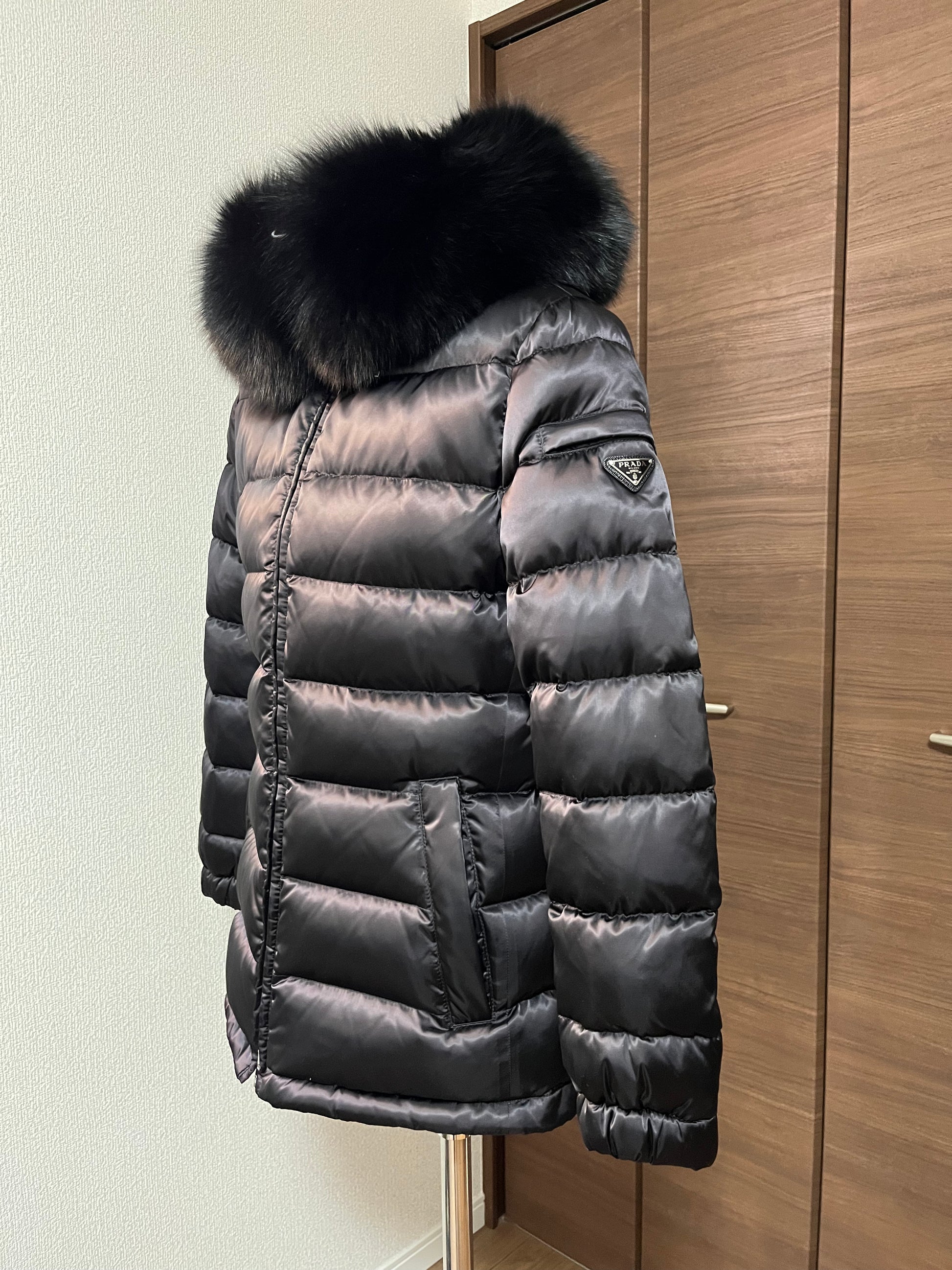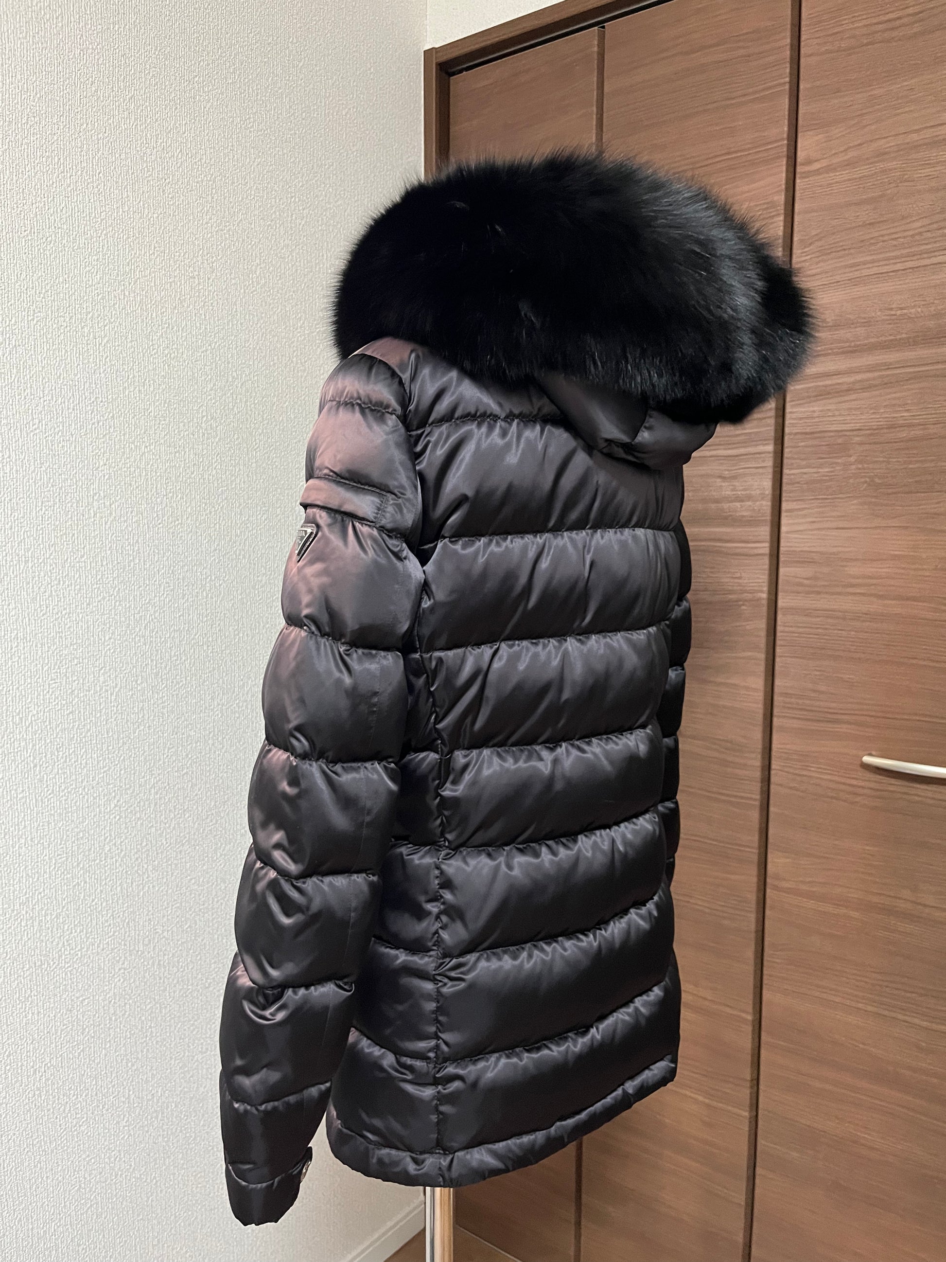 PRADAからフード付きダウンコートが入荷致しました。肩には何気なくプラダのロゴプレートがアクセントになっていて、高級感を何気なくアピール♪♪